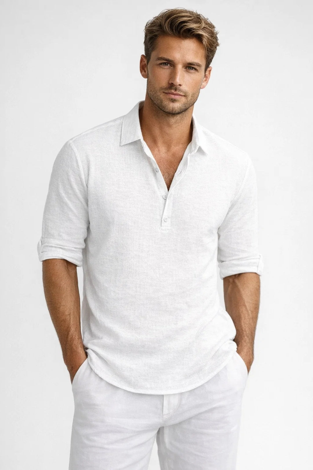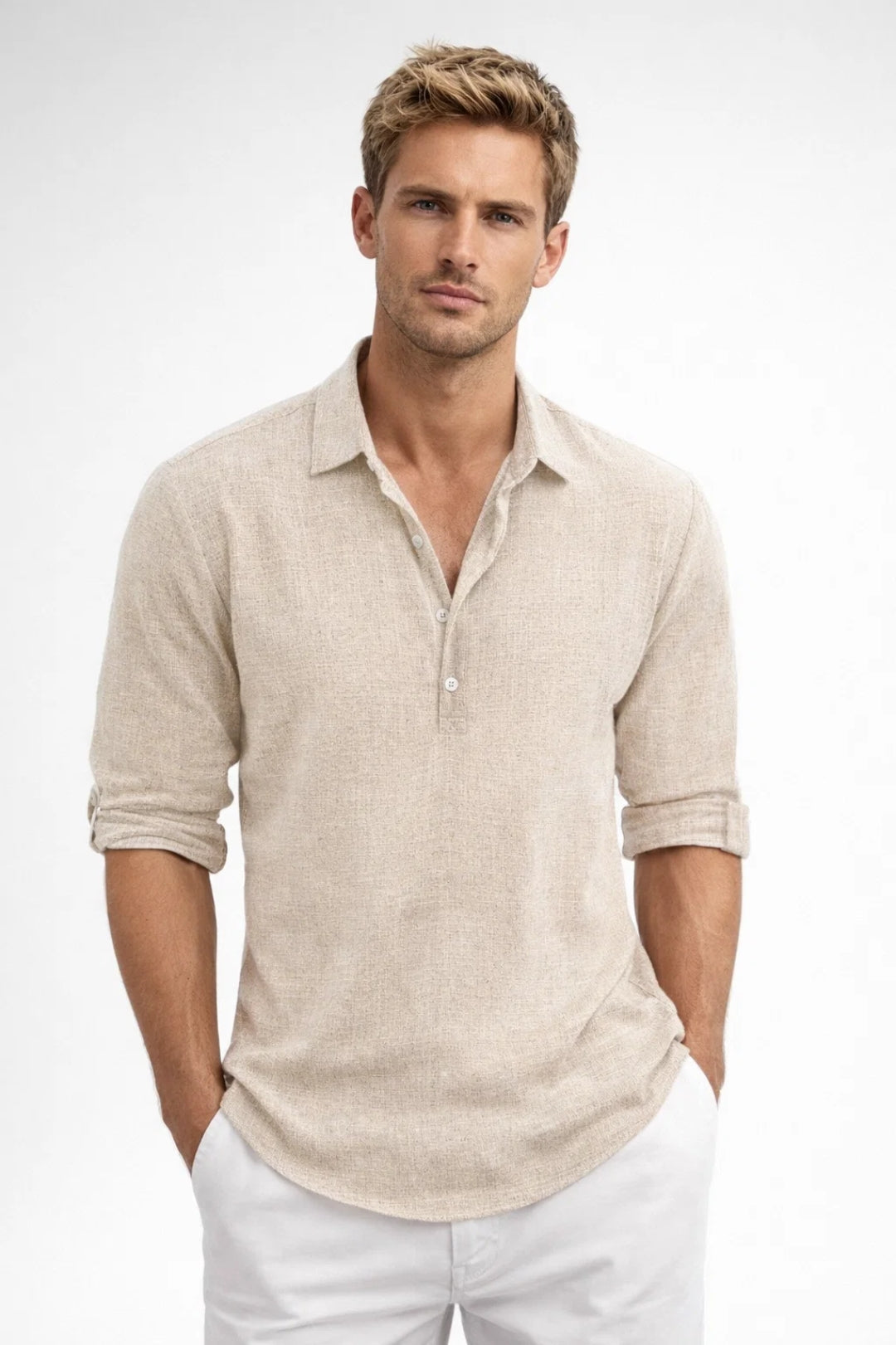 Chemise Homme | lin & manche longue | col ouvert boutonné pour Printemps