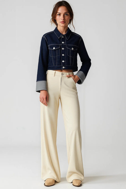 Veste courte en denim foncé | Style casual | Boutons contrastés