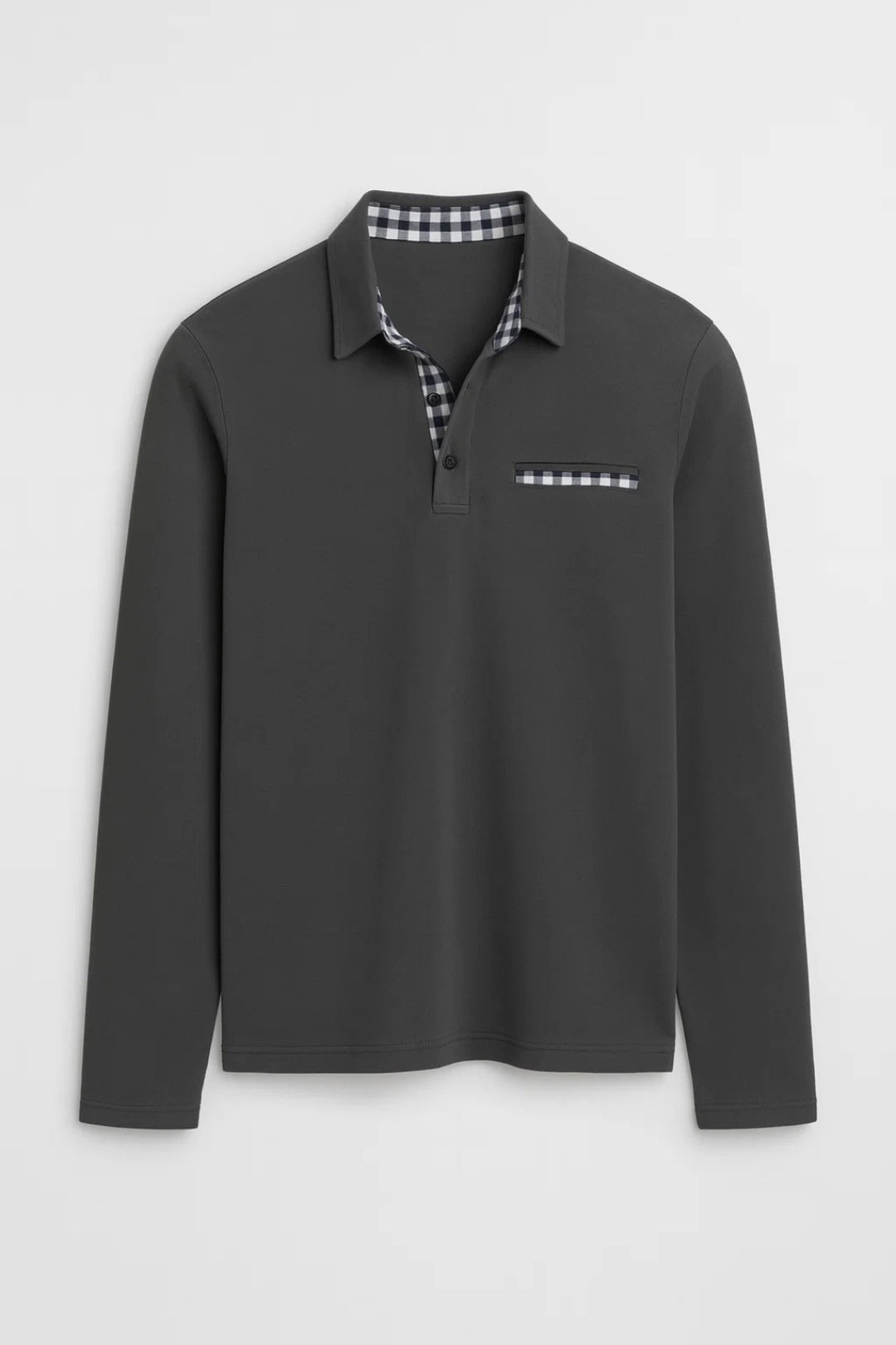 Ce polo à manches longues revisite le style classique avec un col contrasté à carreaux, offrant une allure moderne et soignée. Sa coupe nette assure un porté agréable et polyvalent.