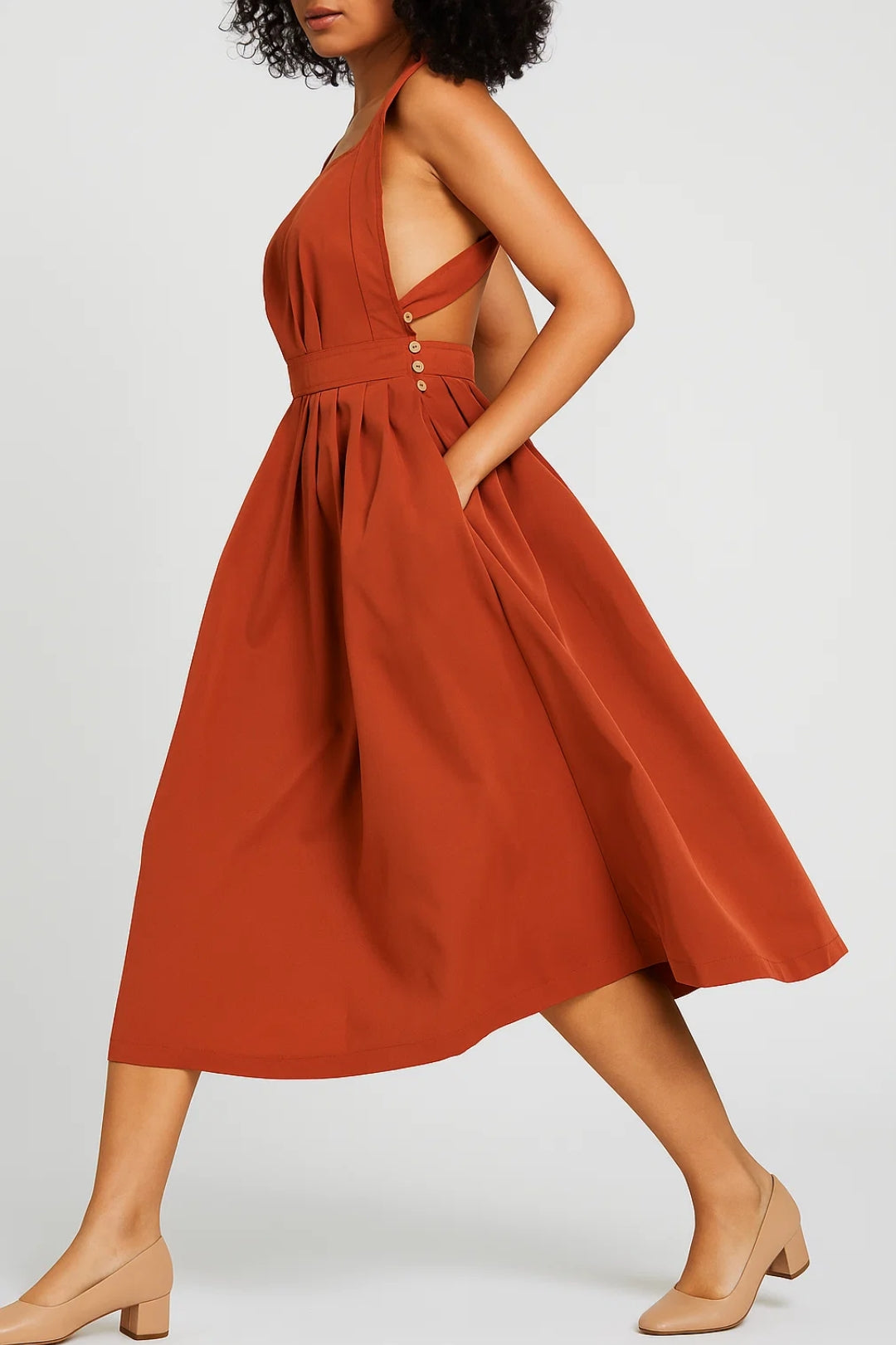 Robe mi-longue plissée | Robe d’été à bretelles larges | Légère et respirante