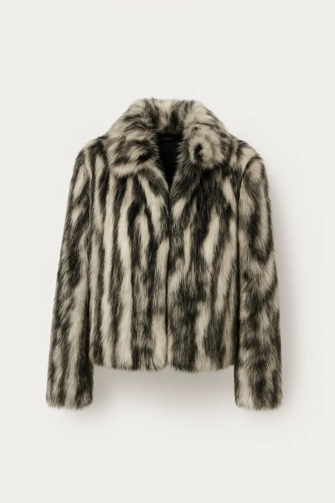 Ce manteau en fausse fourrure offre une silhouette élégante et sophistiquée. Son motif texturé apporte du caractère tout en restant facile à combiner avec vos looks de saison.