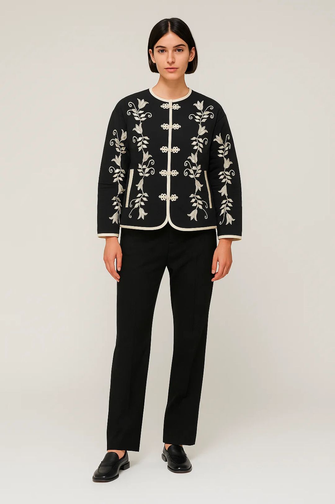 Vestes Brodées | Veste courte à motifs floraux femme | Élégance artisanale et confort moderne